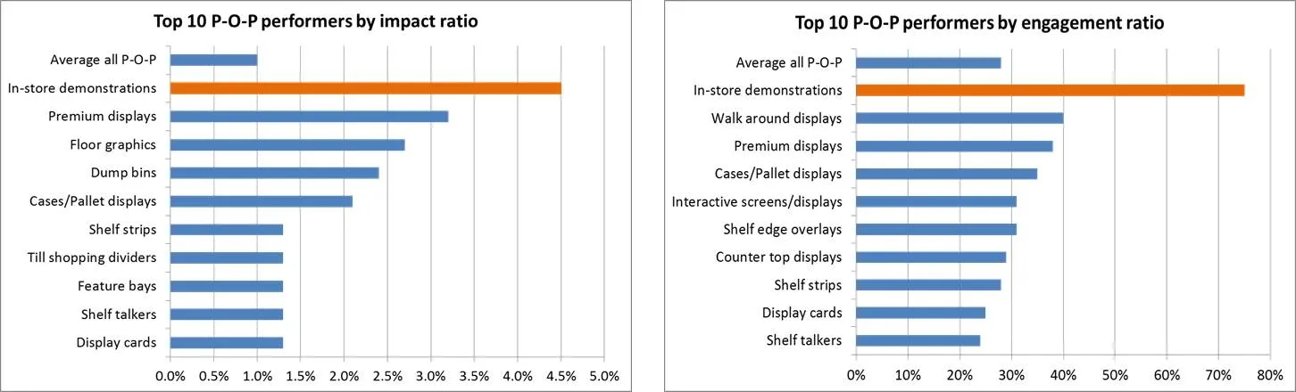 One of the key findings is that In-Store Demonstrations are by far the top performers by Impact and Engagement ratio as shown on the image above. More findings can be found on the “Exactly what makes point of sale effective?”.
